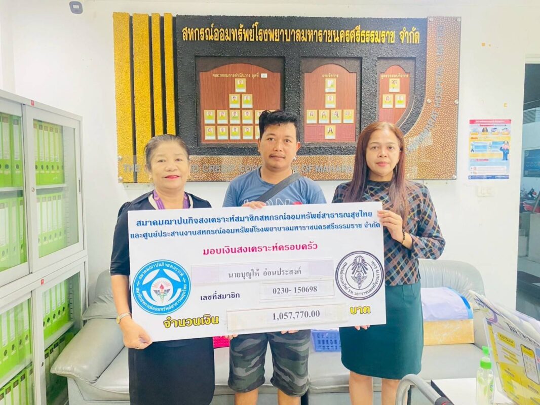 สมาคมฌาปนกิจสงเคราะห์สมาชิกสหกรณ์ออมทรัพย์สาธารณสุขไทย (สสธท.) และศูนย์ประสานงานสหกรณ์ออมทรัพย์ สสธท. มอบป้ายเงินสงเคราะห์ครอบครัวให้กับทายาทหรือผู้รับเงินสงเคราะห์ของสมาชิกที่เสียชีวิต