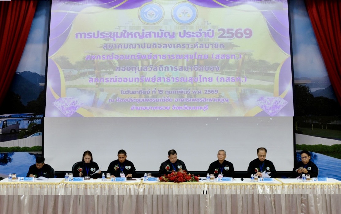 💎ในวันอาทิตย์ ที่ 15 กุมภาพันธ์ 2569 สมาคมฌาปนกิจสงเคราะห์สมาชิกสหกรณ์ออมทรัพย์สาธารณสุขไทย (สสธท.) และ กองทุนสวัสดิการสมาชิกของสหกรณ์ออมทรัพย์สาธารณสุขไทย (กสธท.) นำโดย ดร.มะณู บุญศรีมณีชัย นายกสมาคม / ประธานกรรมการ กสธท. พร้อมด้วยคณะผู้บริหารและฝ่ายจัดการ สสธท. และ กสธท. ได้จัดการประชุมใหญ่สามัญ ประจำปี 2569 ณ อาคารเพชรสะพานบุญ อ.บางกรวย จ.นนทบุรี โดยมีแขกผู้มีเกียรติ ประธานกรรมการ กรรมการ ผู้จัดการ เจ้าหน้าที่ที่เป็นสมาชิกของ สสธท. และ กสธท. จาก 109 ศูนย์ประสานงานทั่วทุกภาคของประเทศ เข้าร่วมประชุมใหญ่สามัญฯ ในวันดังกล่าว จำนวนกว่า 500 คน