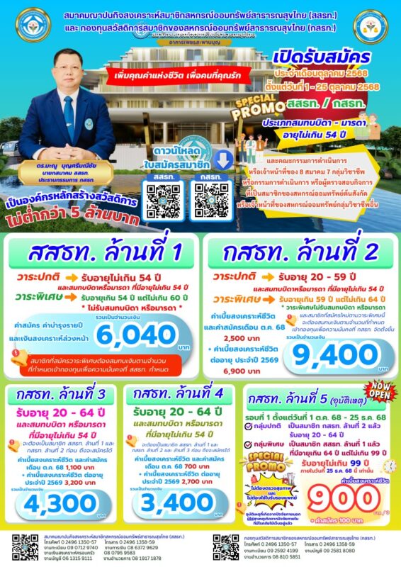 ในวันเสาร์ ที่ 16 กุมภาพันธ์ 2568 สมาคมฌาปนกิจสงเคราะห์สมาชิกสหกรณ์ออมทรัพย์สาธารณสุขไทย และ กองทุนสวัสดิการสมาชิกสหกรณ์ออมทรัพย์สาธารณสุขไทย
